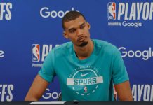 Harper scored 14 points in the first half as the Spurs built a 78-53 lead at the break. Carter Bryant’s 3-pointer extended the margin to 60-36 in the second quarter, drawing boos from the home crowd.